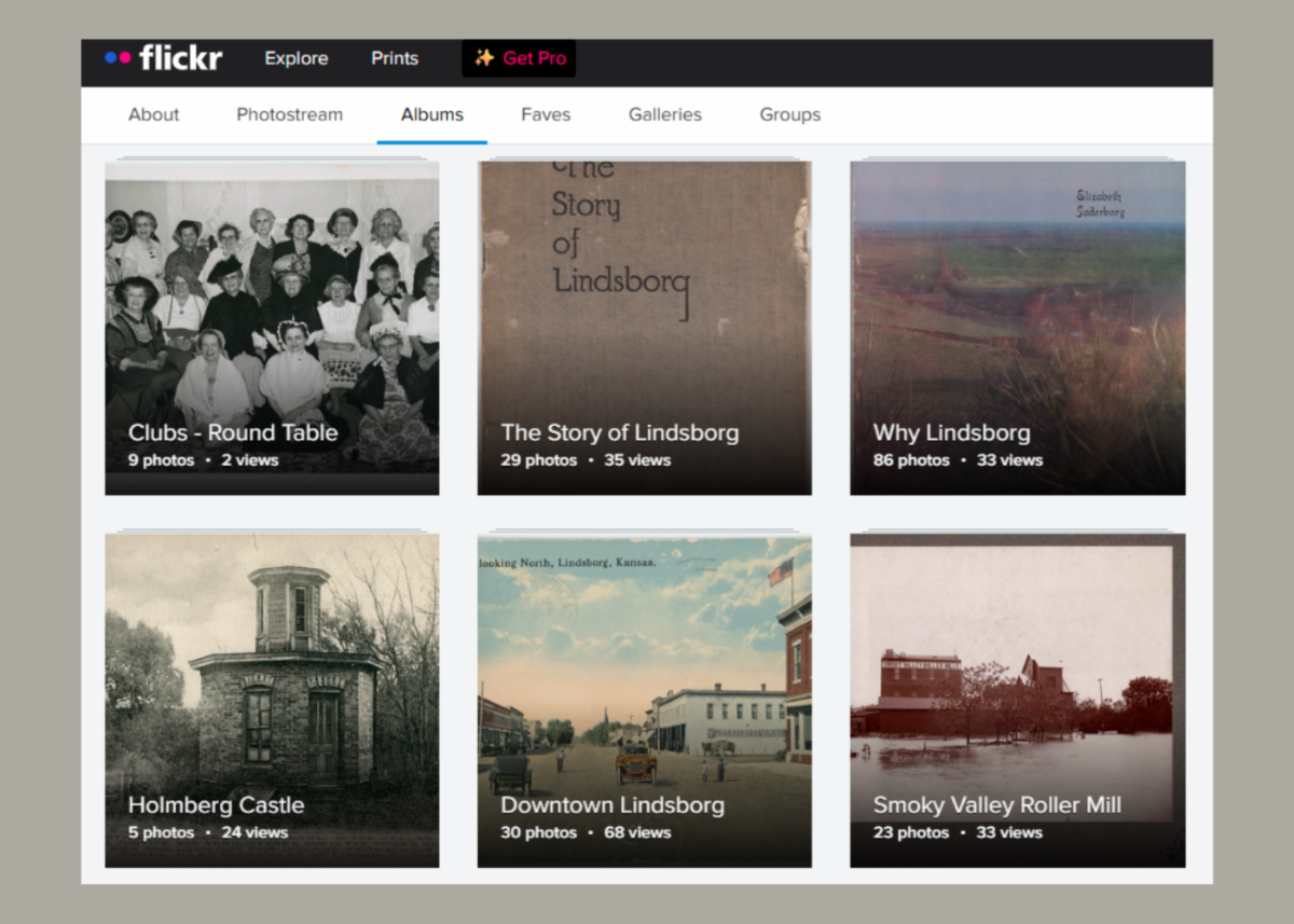 | A closer look at the thousands of photographs added to the museum and shared with the public through Flickr. Presented by Lenora Lynam and Tim Stewart. The free program begins at 7:30pm and is held in the Fellowship Hall of Messiah Evangelical Lutheran Church, located at 402 N. First Street. Please enter the east door on the north side of the building. About the Smoky Valley Historical Association: Smoky Valley Historical Association is a non-profit organization dedicated to collecting and preserving historical data pertaining to the early history and settlement of our community in general and the city of Lindsborg in particular. SVHA helps preserve and beautify places of historical interest in the Smoky Valley, and owns and maintains Coronado Heights Park and Hoglund Dugout near Lindsborg. For more information, email the SVHA: smokyvalleyhistory@gmail.com or mail at PO Box 225, Lindsborg, KS 67456. |  |