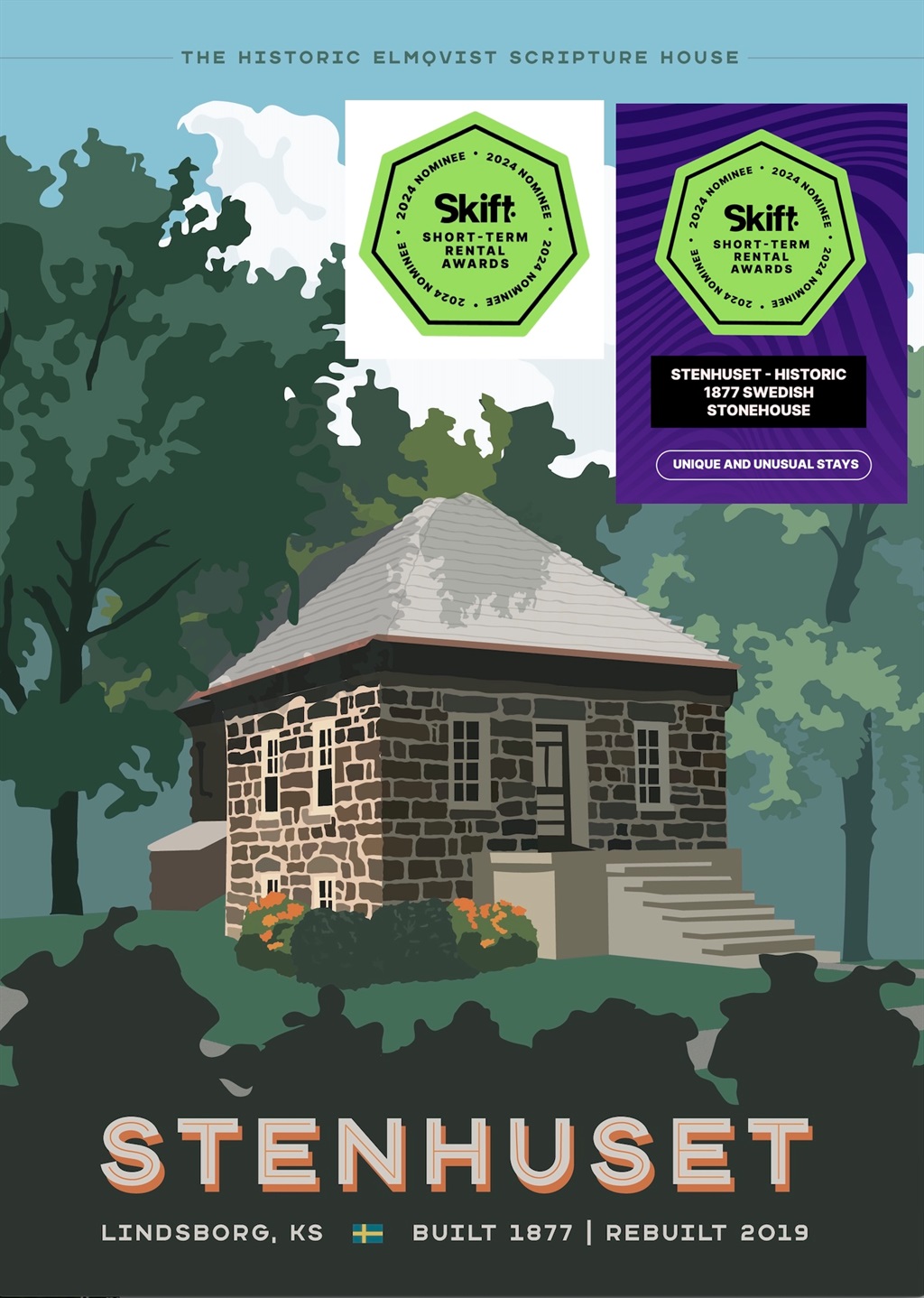 Check out Stenhuset, one of Lindsborg Vacation Rentals. This and more 5-star lodging choices are found at Visit Lindsborg.